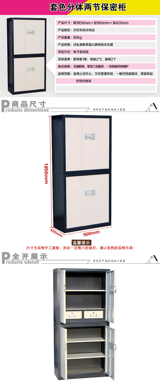 套色分體兩節(jié)保密柜帶屜